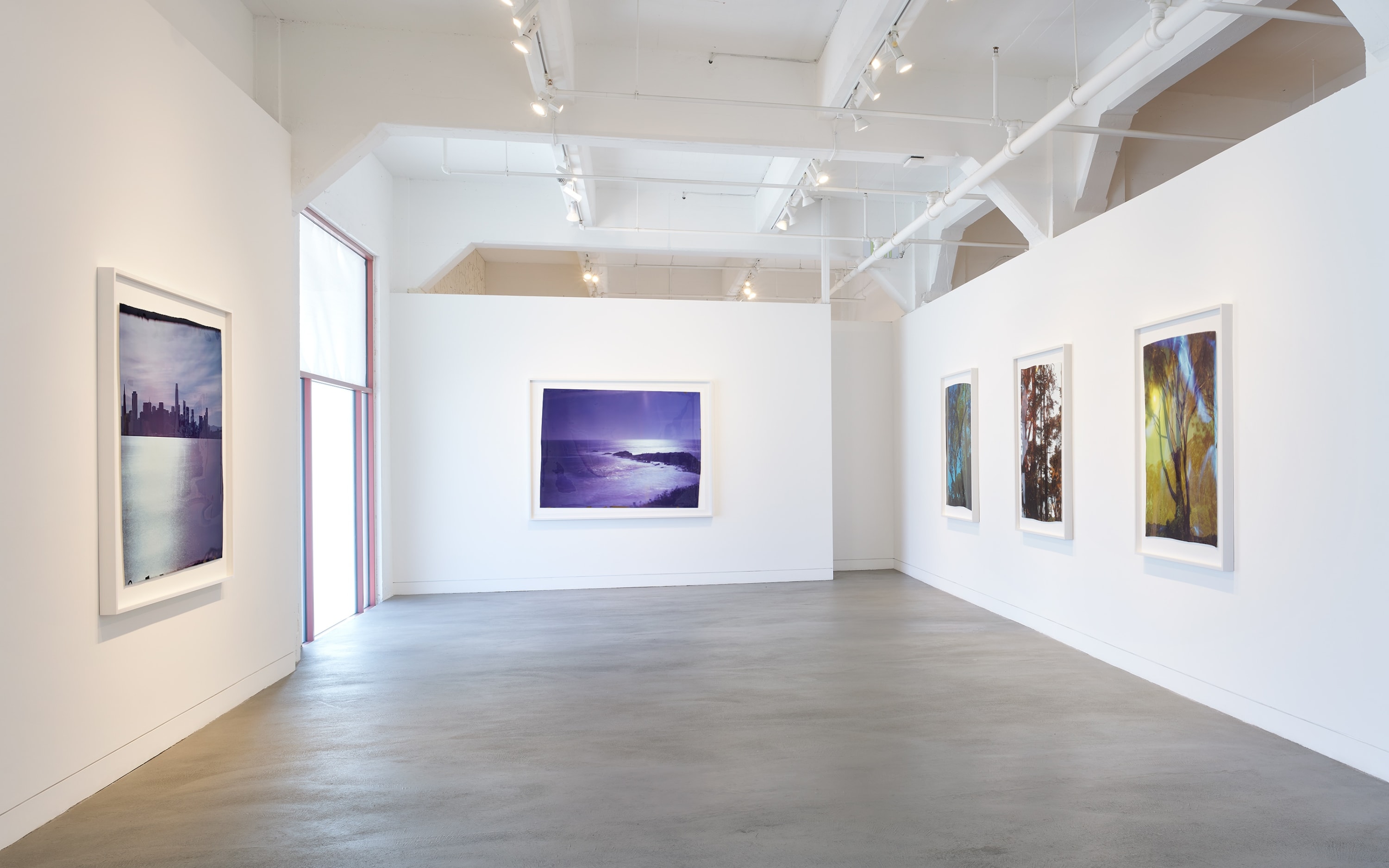 Sea of Glass also includes a selection of large-scale photographs of San Francisco, shot from across the bay on Treasure Island, the city’s skyline bisecting a wide expanse of sea and sky. These latest landscapes capture the effects of light and its movement, as it animates the water’s surface or filters through dense clouds and marine layer. Here, Chiara’s inventive methods yield images that subvert and refresh our reading of these familiar, postcard-perfect vistas, as the stylistic signatures of his process — uneven hand-cut edges, subtle chemical streaking, tape marks, and the unexpected placement of recognizable landmarks — lend a sense of disorientation and discovery.